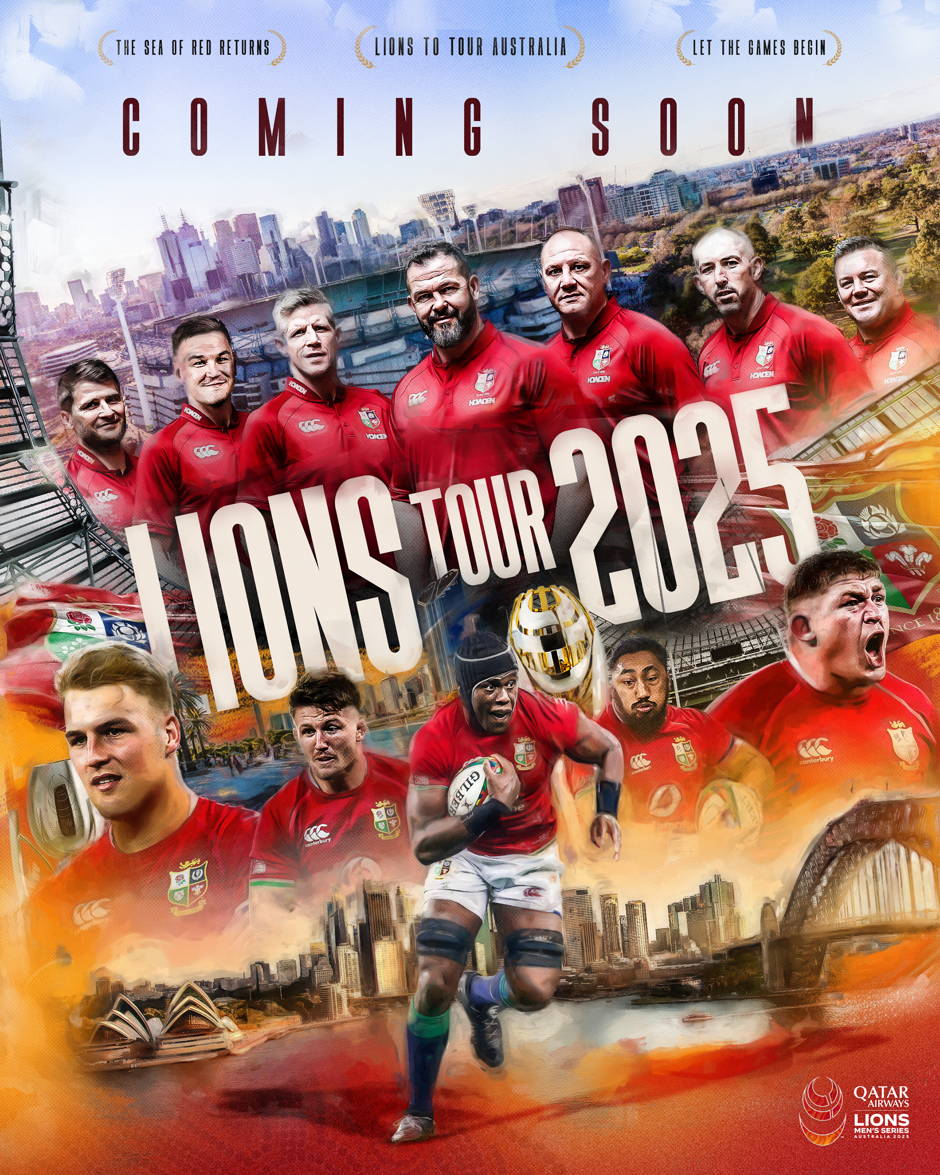 We had the privilege of creating artwork for the British & Irish Lions 2025 Tour Squad Announcement, designing a poster that brought together the coaches, confirmed squad members, and iconic Australian cultural elements and landmarks. We produced this as part of the Visually Speaking team, working alongside Mike Miles-Boardman.